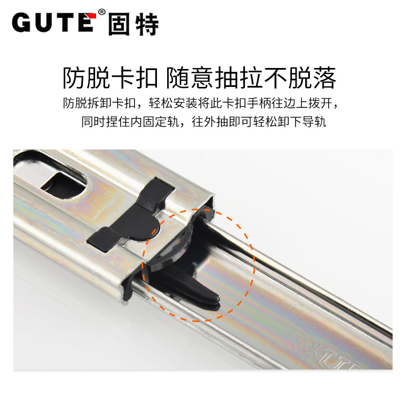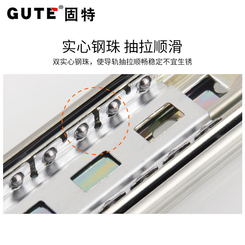 Gute integral cabinet drawer rail slide rail mute drawer rail 3 sections slide side-mounted ball rail 3 sections track