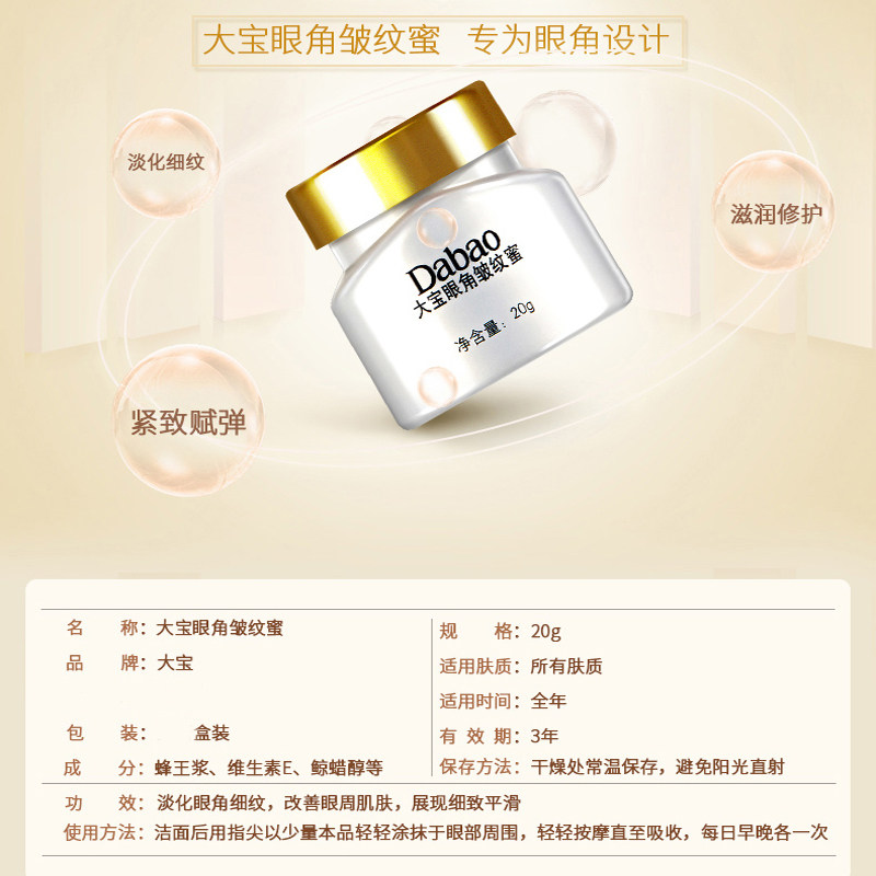 Dabao corner of the eye Wrinkle Honey 20g moisturizing eye cream lightens fine lines Fat particles Improve moisturizing, soothe and tighten the eye area