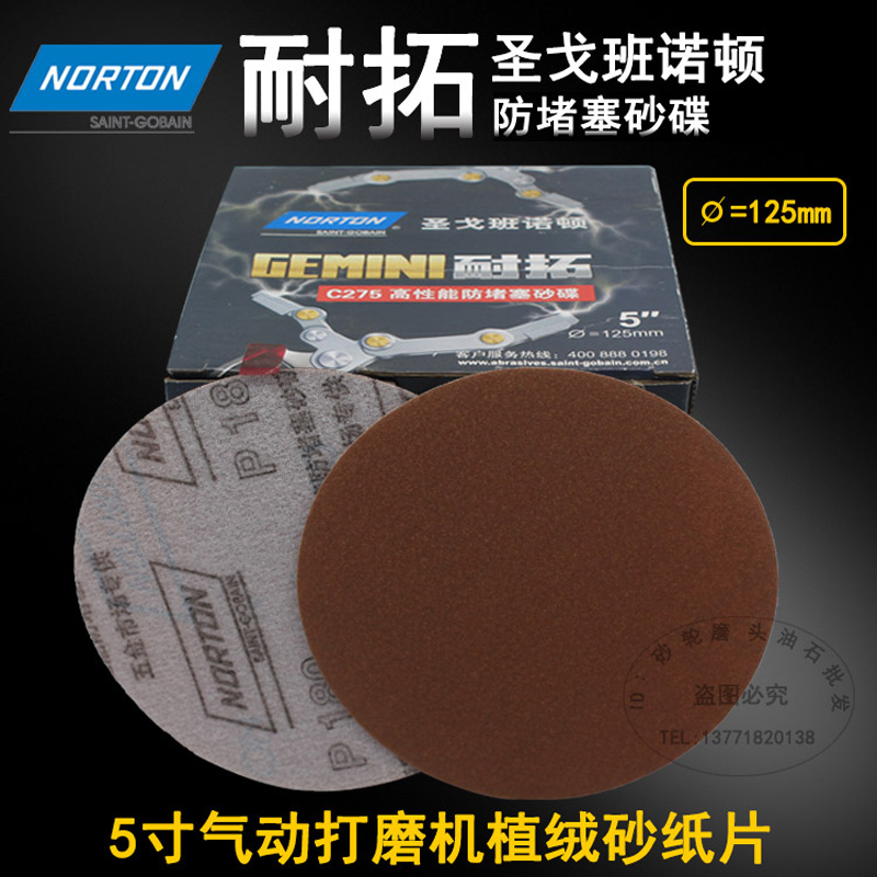 American Norton C275 flocking sandpaper sheet back suede plush sheet 5 inch 125mm Pneumatic grinding mill sandpaper polished sheet