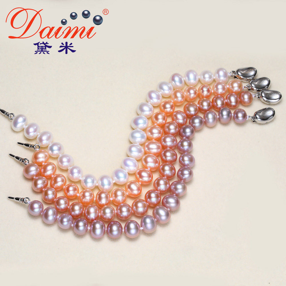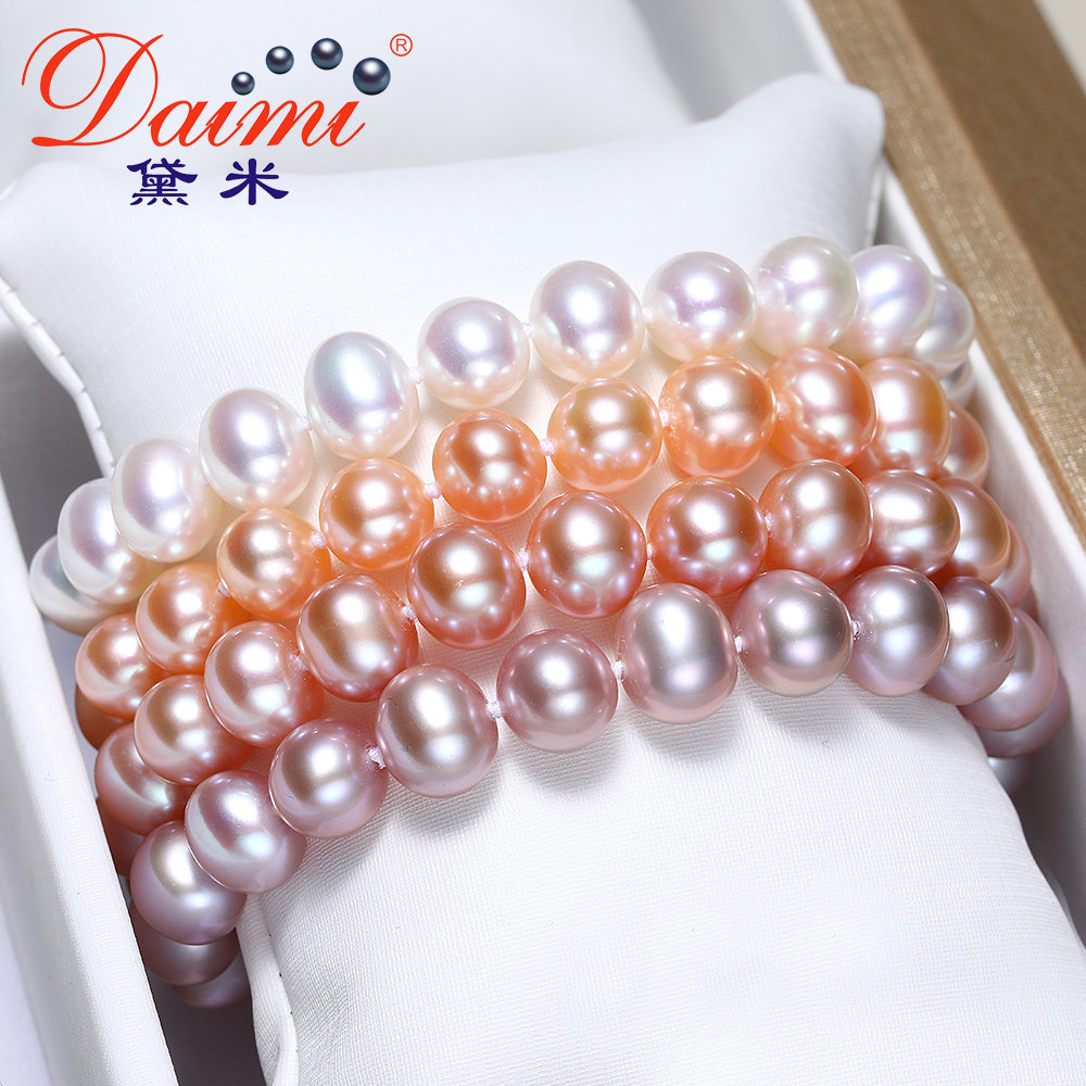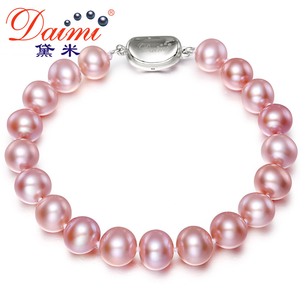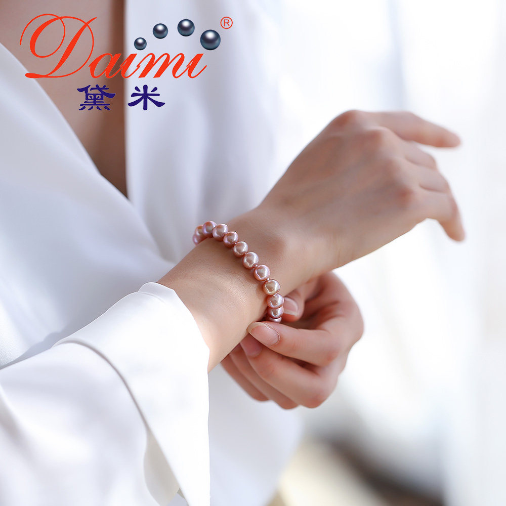 Demi Yan fan 8-9mm near round bright pink purple freshwater pearl bracelet classic white gift to girlfriend