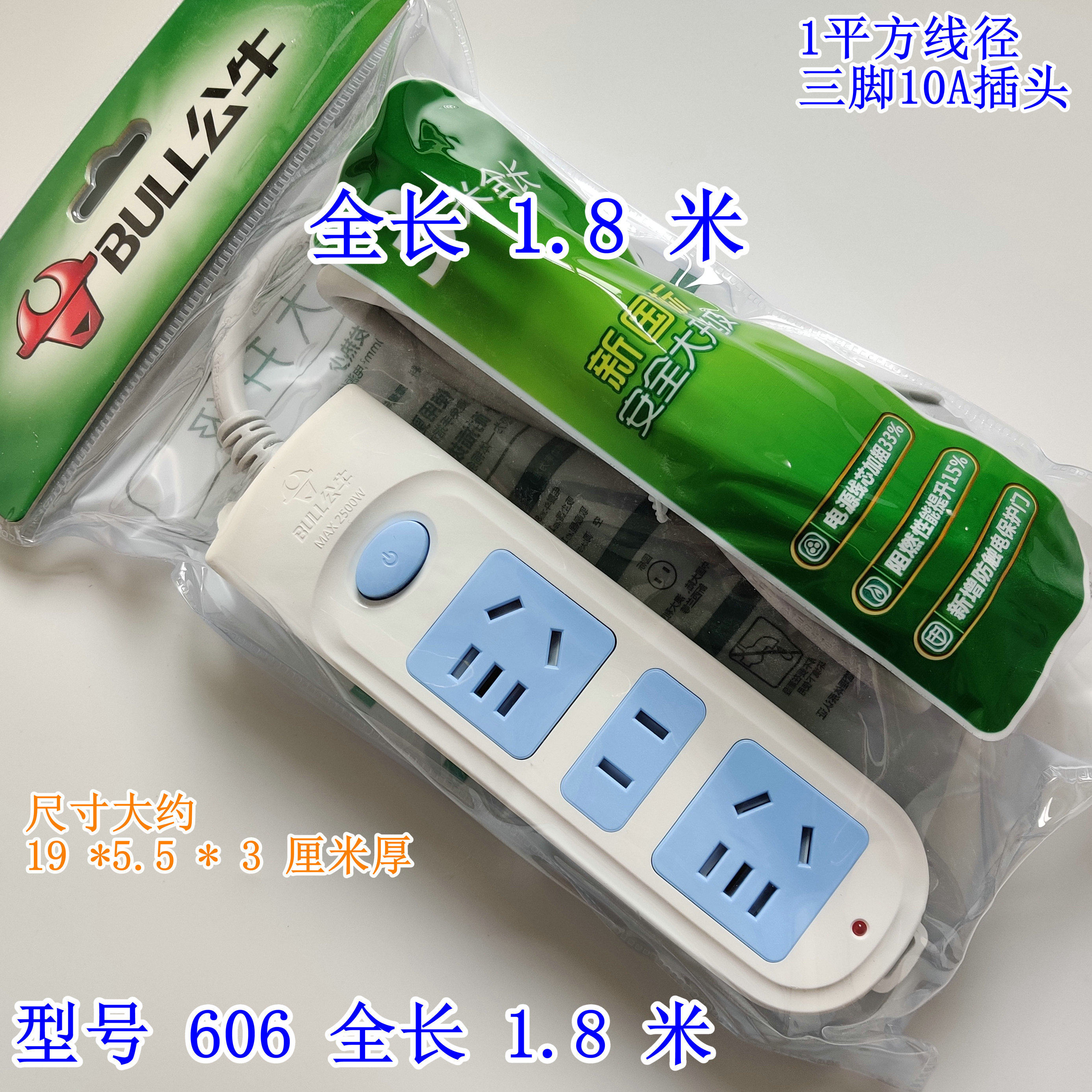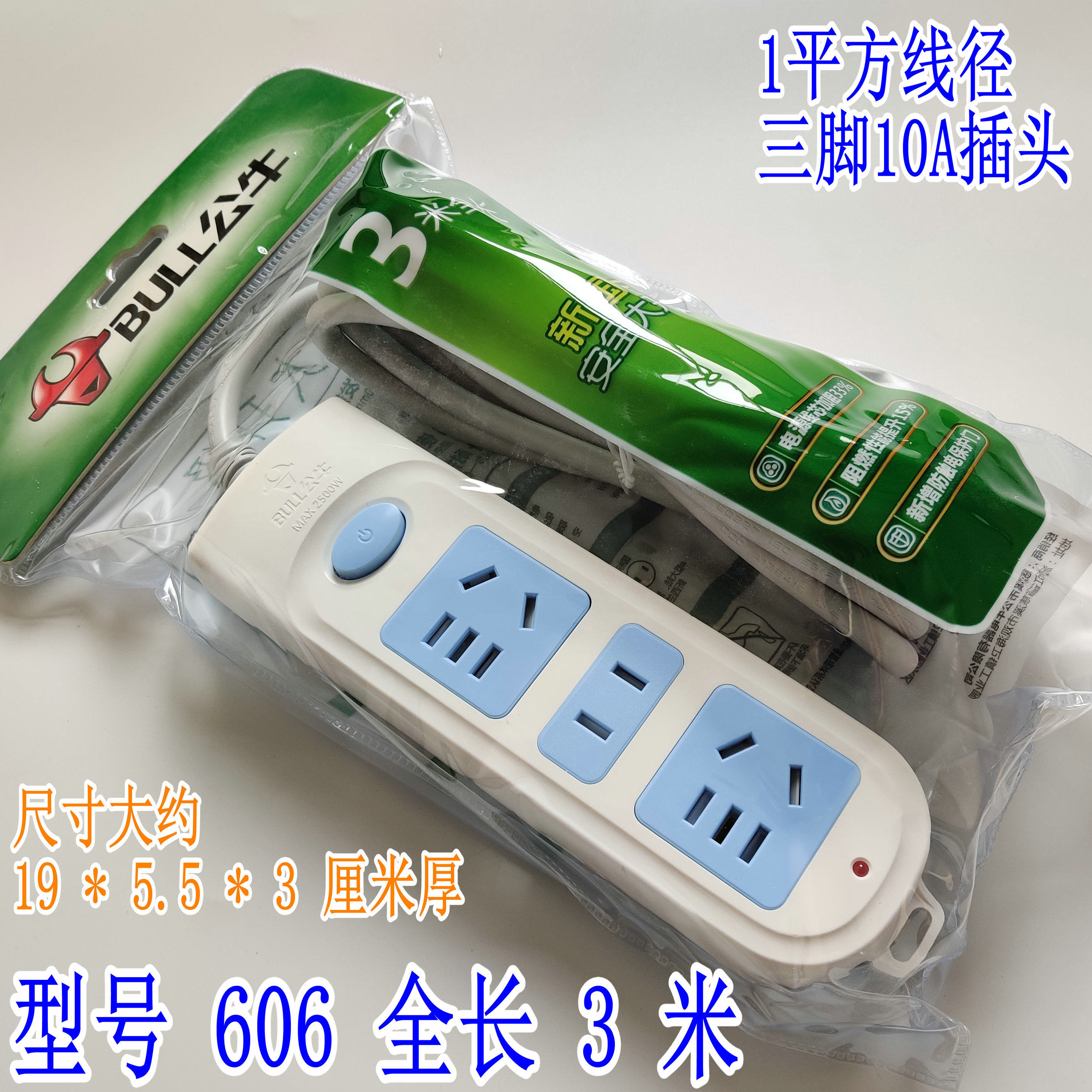 Bull socket wiring board 3-socket household power extension cord plug-in row GN-606 1 8 3 4 6 10 meters