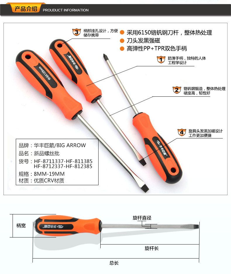 Huafeng giant arrow through the heart screwdriver 38MM-250MM word cross plus magnetic screwdriver rob head screwdriver screwdriver