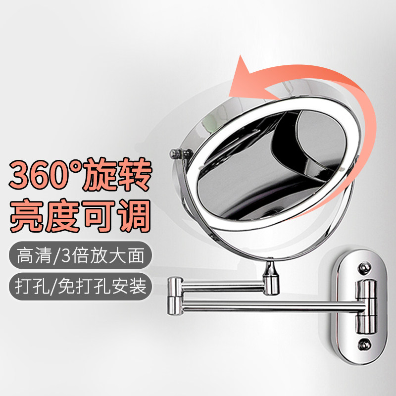 Bathroom mirror makeup mirror hole-free wall-mounted hotel powder room wall-mounted double-sided makeup mirror Telescopic folding mirror woman