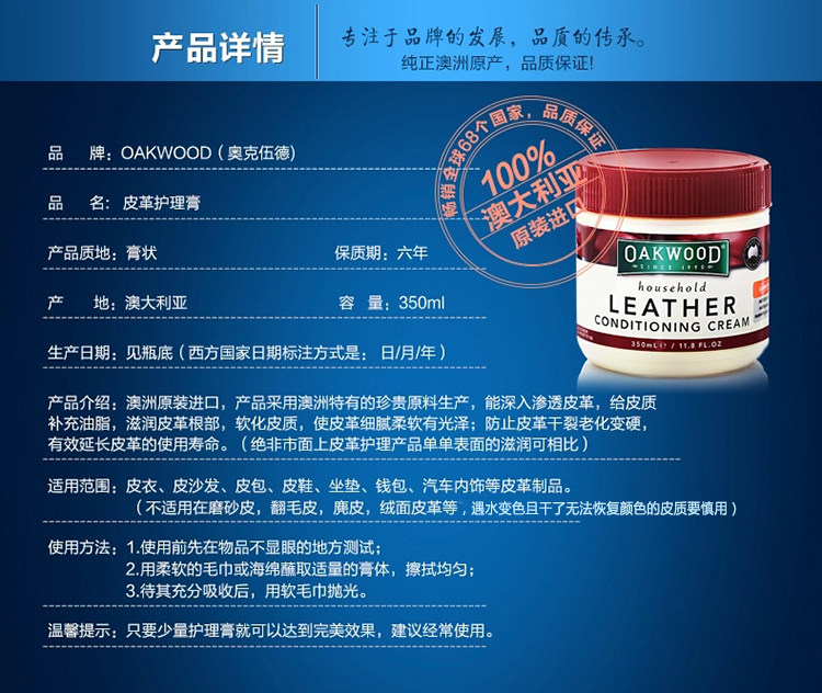 Imported Oakwood leather care agent leather sofa maintenance oil leather clothing leather bag luxury leather care cream