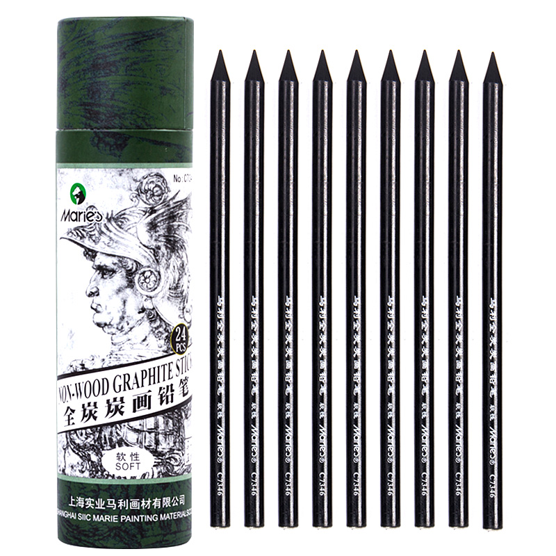 Marley full carbon sketch pen Beginner sketch sketch Art painting special pen Soft neutral wood-free full carbon drawing painting professional charcoal drawing pencil Marley Melanin drawing pen Art supplies tools