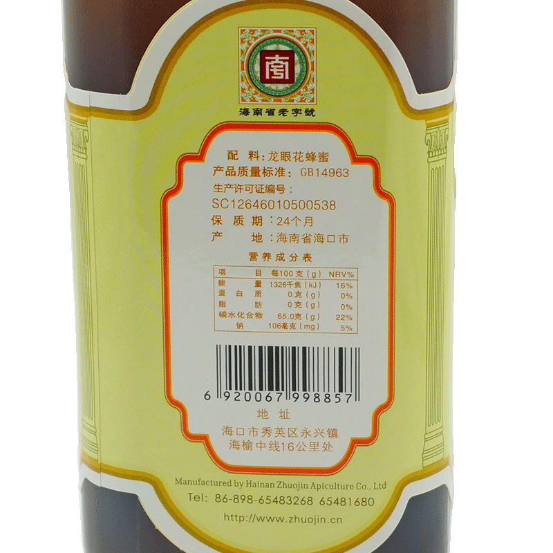 Hainan Time-honored Brand Zhuojin Dragon Den Honey Green Food Certification Series Large Bottled Farm Mature Honey