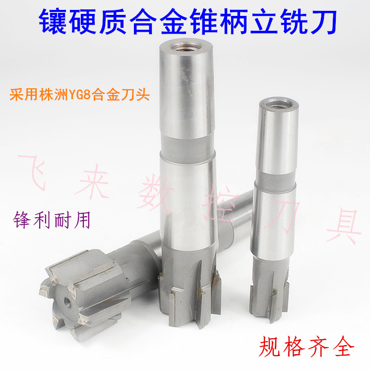 Inlaid carbide cone shank upright milling cutter inclined blade straight tooth welding tungsten steel 21 22 22 24 24 25 26mm YG8