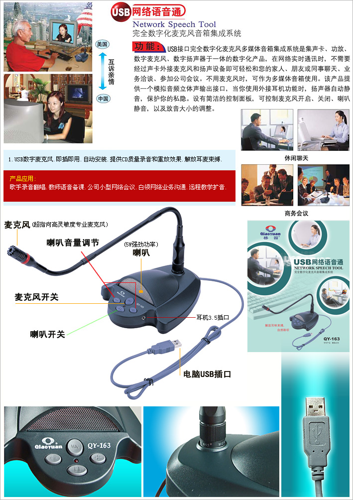 Three Eagle USB Microphone QY-163NS 8480 2602 Computer Film With Horn Internet Chat Voice Teaching