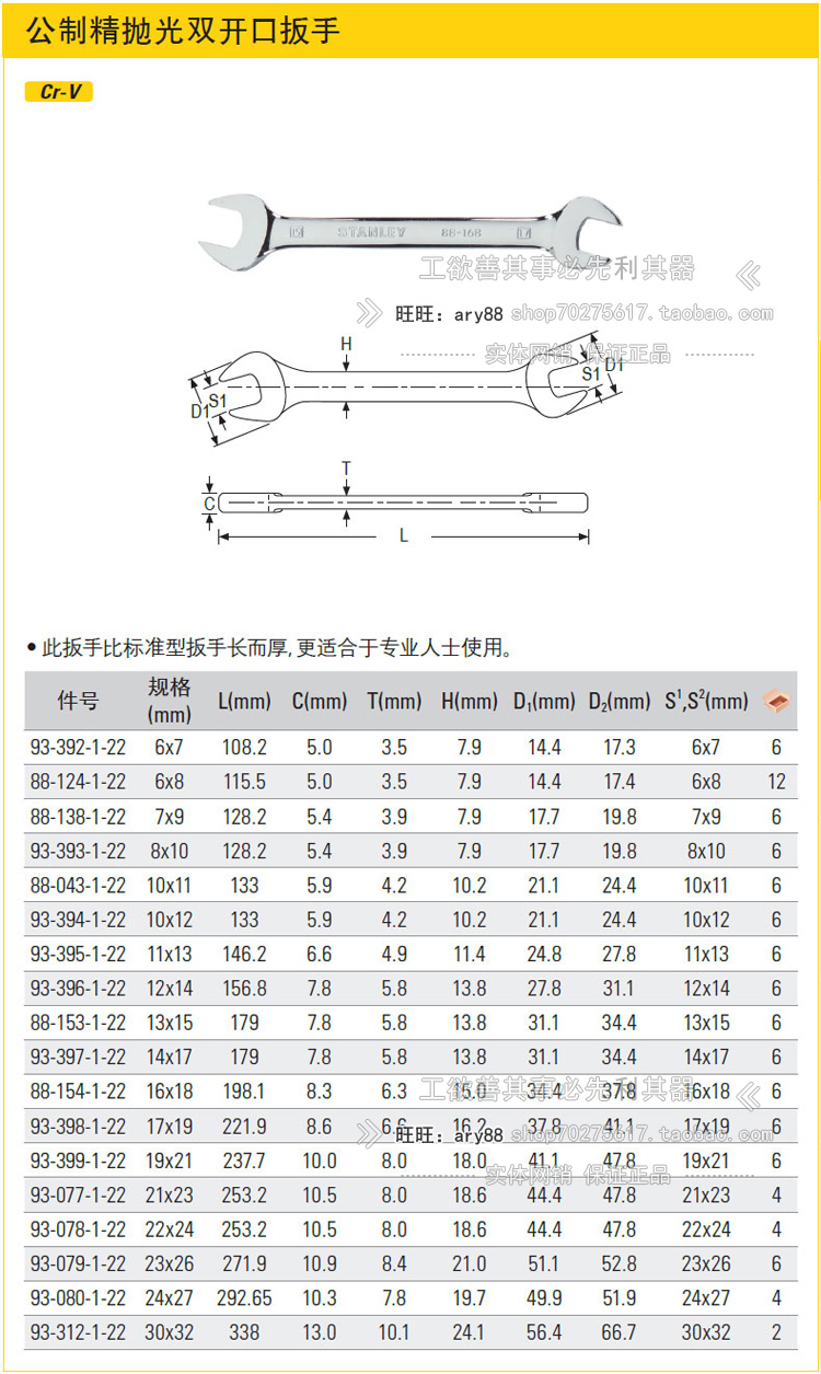 STANLEY STANLEY Metric Fine polished double open gate wrench 6x7 to 30x32