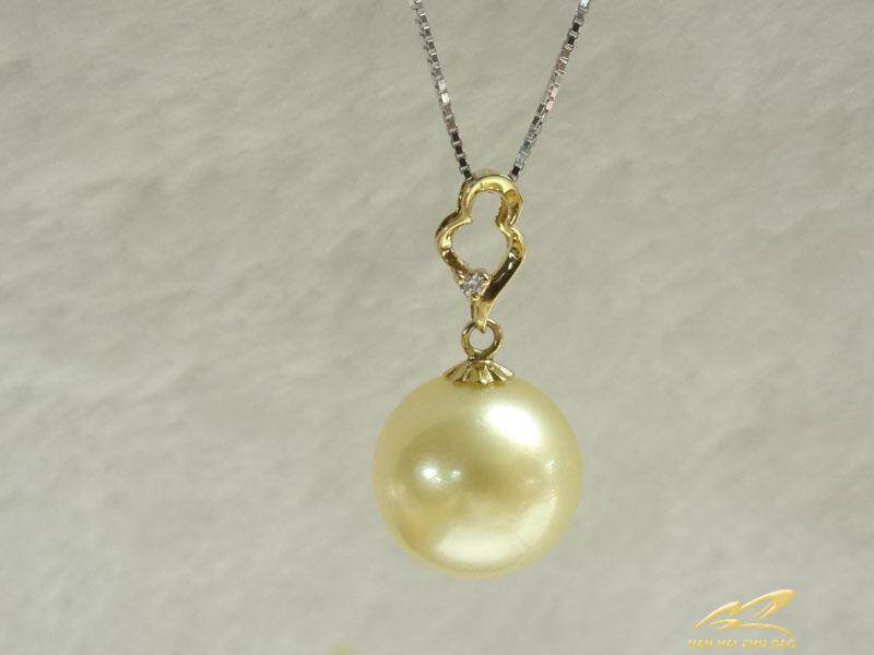 18K gold inlay 11-11 5mm natural Nanyang sea water gold pearl pendant is round without flawless intense light-Taobao