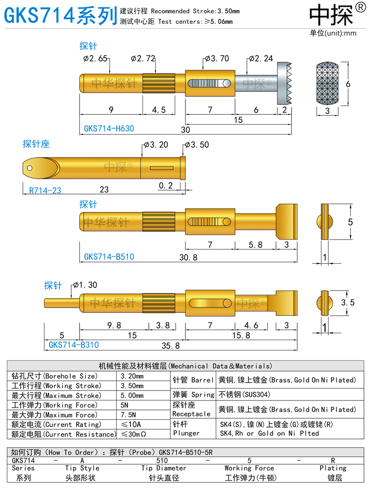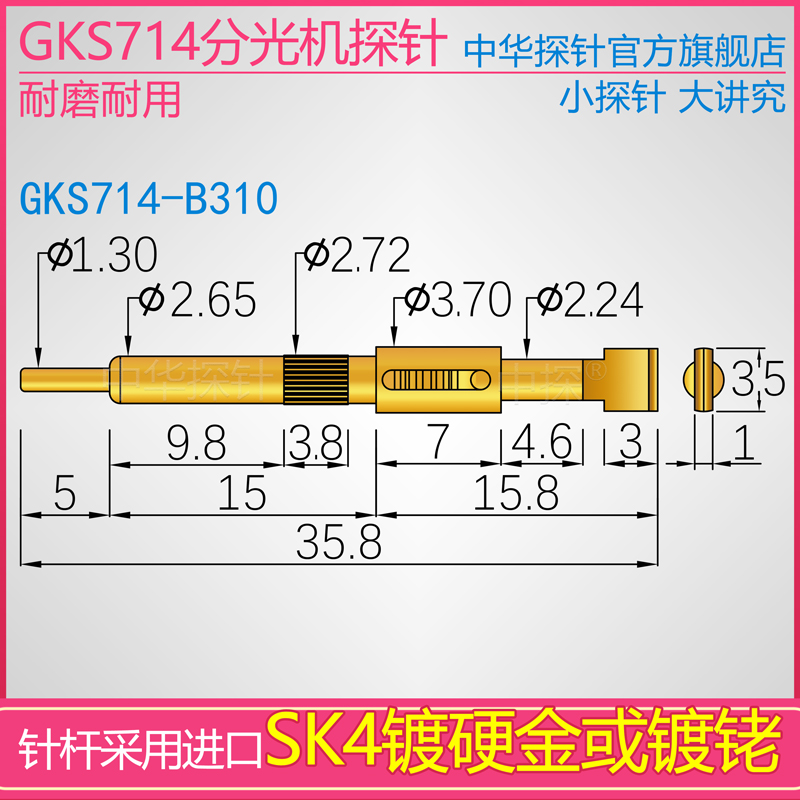 Spectroscopic machine knifepoint shaped probe GKS714-B510-5G probe seat R714-23 RECTANGULAR HEAD PLATED RHODIUM PROBE GKS714-H630-5R knifepoint shaped integrated probe