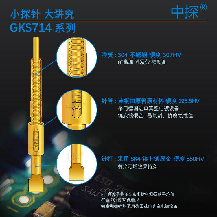 Mid-probe GKS714-B310-5N spectroscopic machine test needle orientation probe knife edge shape GKS714 Department