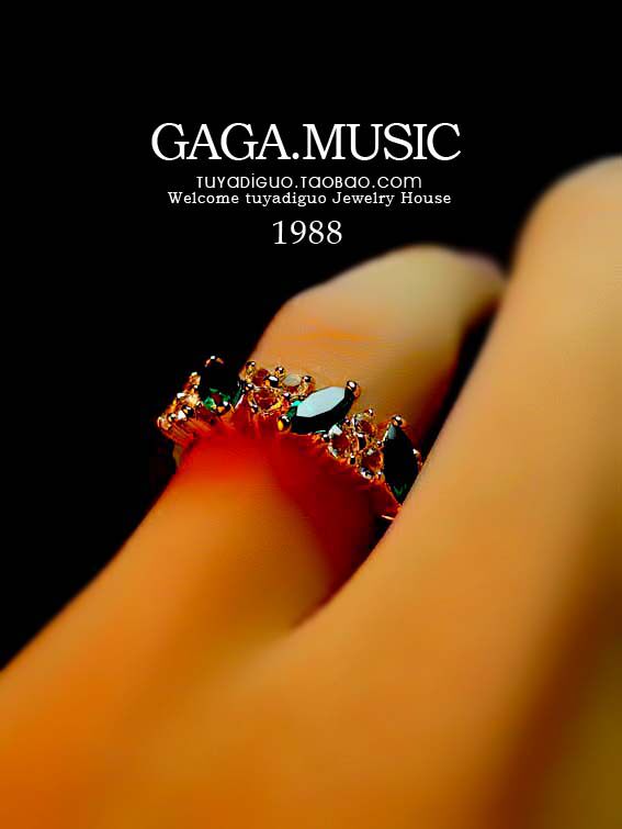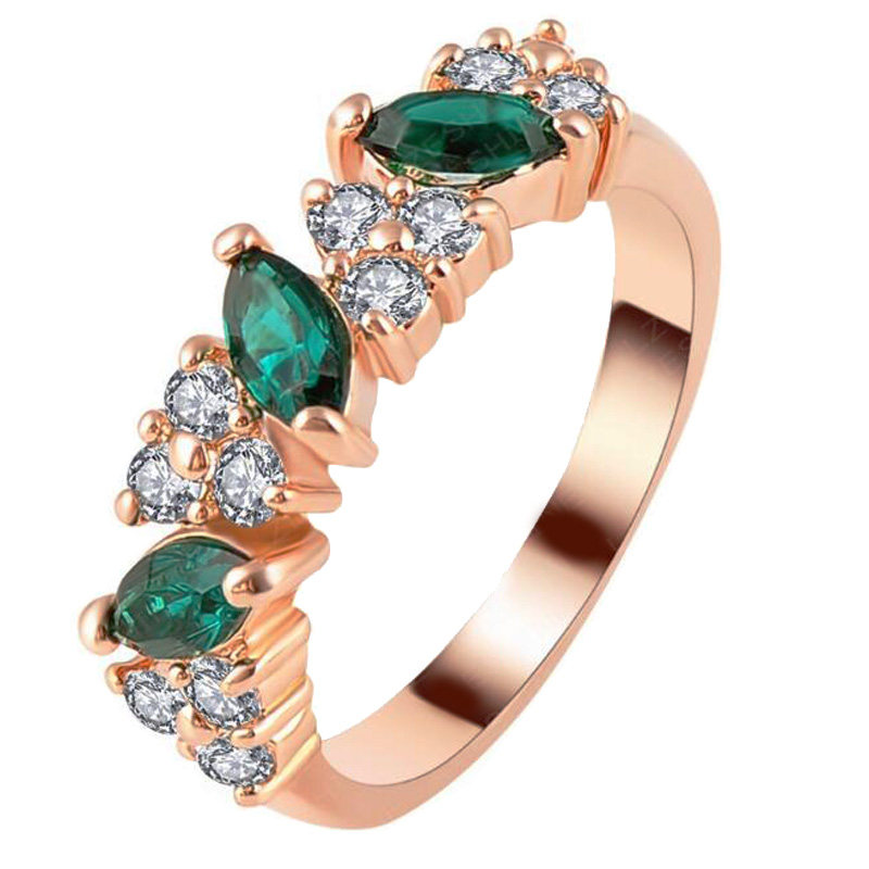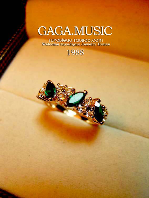 Flashing Austrian style crystal emerald ring diamond ring Korean fashion retro jewelry female