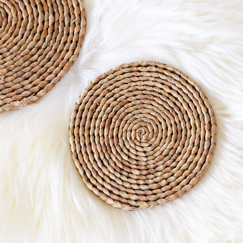 Large water grass round pad diameter 28 cm Medium water grass round pad diameter 20 cm Small corn husk round pad diameter 15 cm Large corn husk round pad diameter 28 cm Small water grass round pad diameter 15