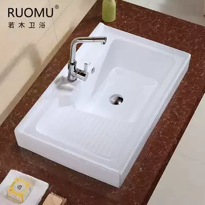 Ruomu bathroom laundry pool Balcony laundry basin Basin with washboard Hand wash basin Deep groove ceramic laundry basin