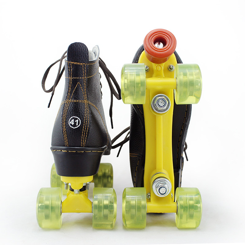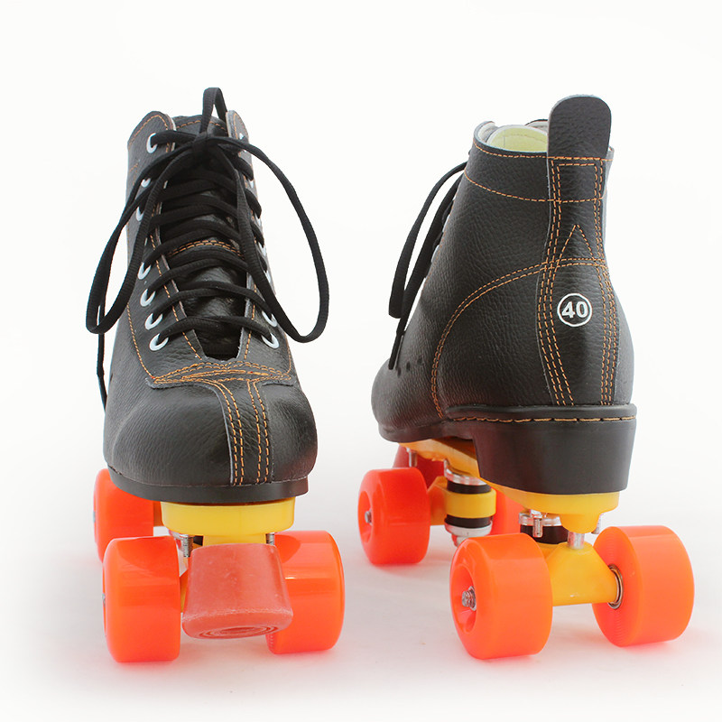Genuine Leather Bull Leather Black Four-wheeled Double Rows Of Ice Skates Dry Skates Wheel Slide Male and female Children Adult Skates Pu Wear-proof