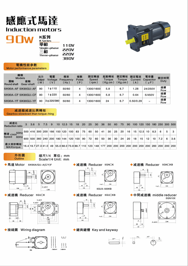 Taiwan OPG Oubang Motor 51K 5IK90 120RGU-CF+5GU60K with ear reinforcement