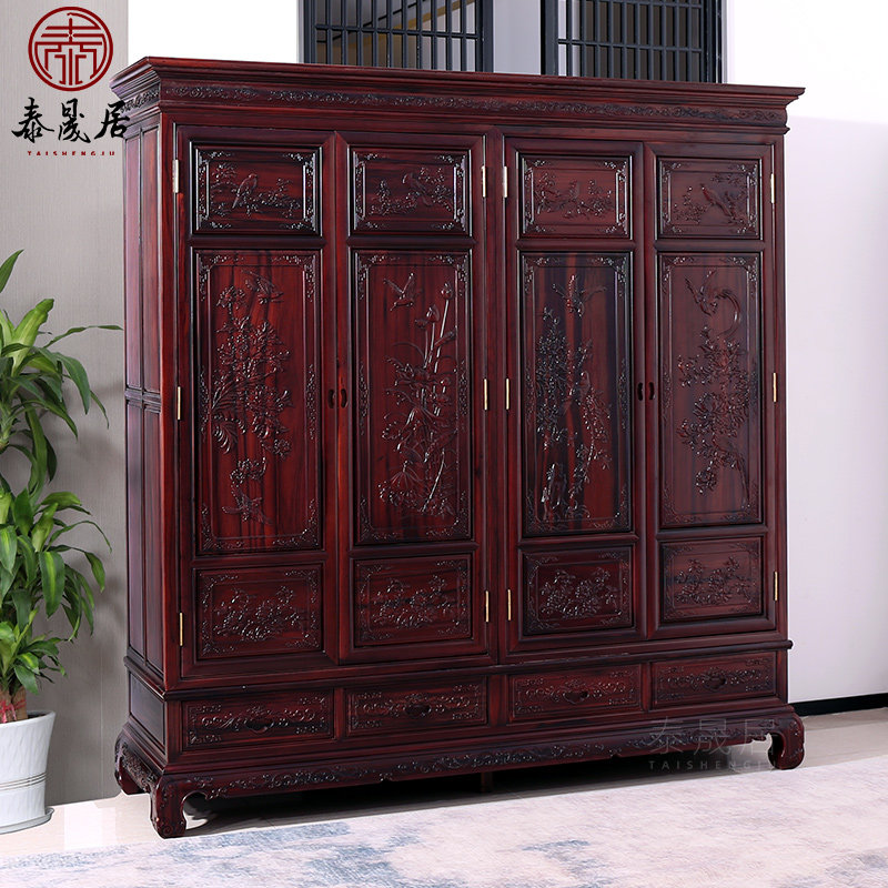 Mahogany wardrobe bedroom furniture storage home large wardrobe Chinese style three or four door storage cabinet solid wood South American rosewood