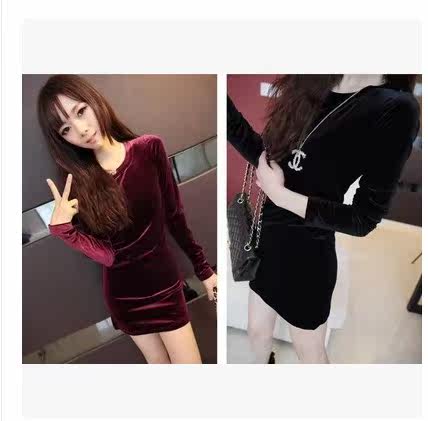 Spring and autumn women's wear with a mid-length version of the hip T-shirt long-sleeved gold velvet long version large size bottoming shirt fat MM tide