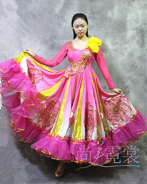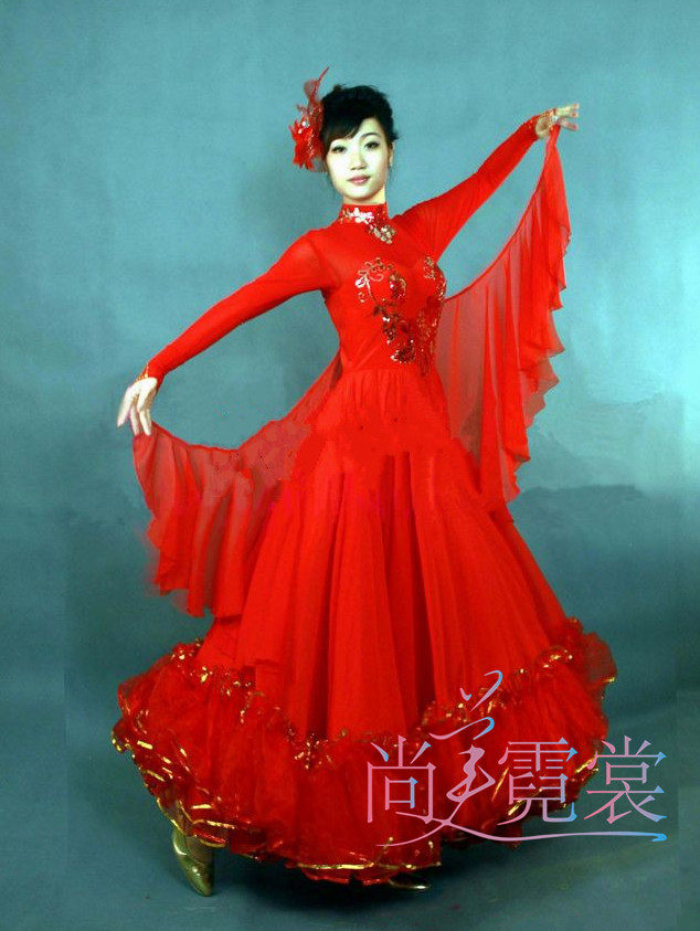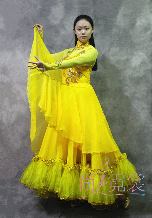 National Standard Dance Dress Waltz Moden Swing Dress Red Yellow Shop Beijing Store for Rental Shop