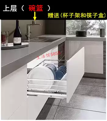 Boutique kitchen integral cabinet double drawer type 304 stainless steel 600 700 800 cabinet dishes pull basket damping rail