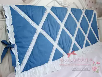 Korean pastoral * dark blue lace edge * bed headgear soft bag cloth art bed hood cover with cotton can be customized size