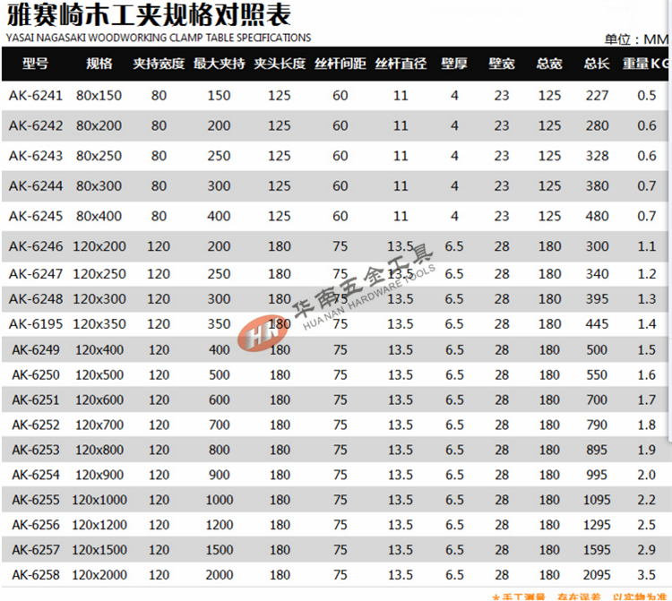 Hong Kong Yazisaki Woodwork Clip F Clamps Wood Press Clamps 80 * 150 Series Specifications
