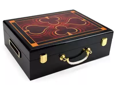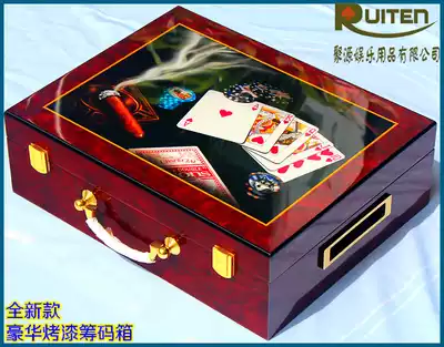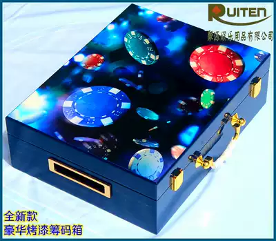 Genuine solid wood portable chip box baking paint high gloss 3D pattern mahjong chip box double layer can put 500 chips