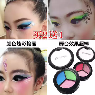 Three-color eyeshadow shining pearlescent matte student children's performance blue and purple pink green earth color eyeshadow plate buy two get one free