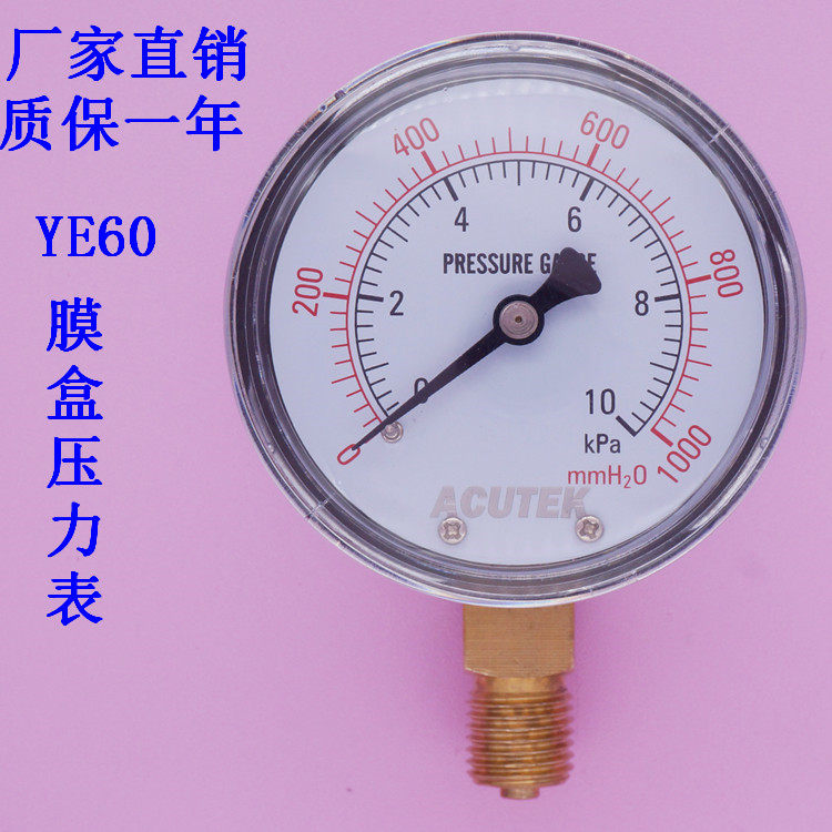 ACUTEK membrane case pressure gauge micro-pressure gauge liquid gas YE60 YE60 10KPA M14 M14 * 1 5-Taobao