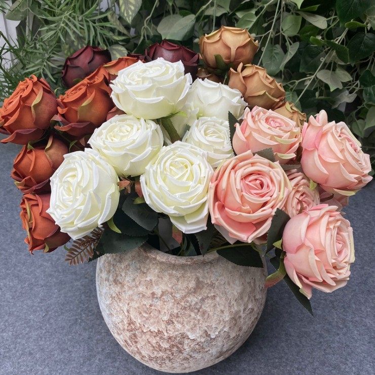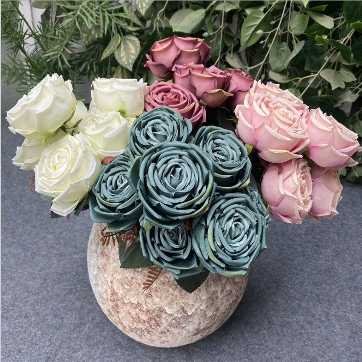Simulation of bouquets 7 heads of imperial concubine roses fake flower desktop ornaments wedding road introduction flower arrangement wall decoration