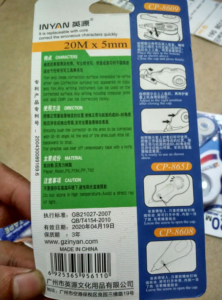3 packs Yingyuan CP-8609B environmental protection correction belt correction belt modification correction belt send replaceable core