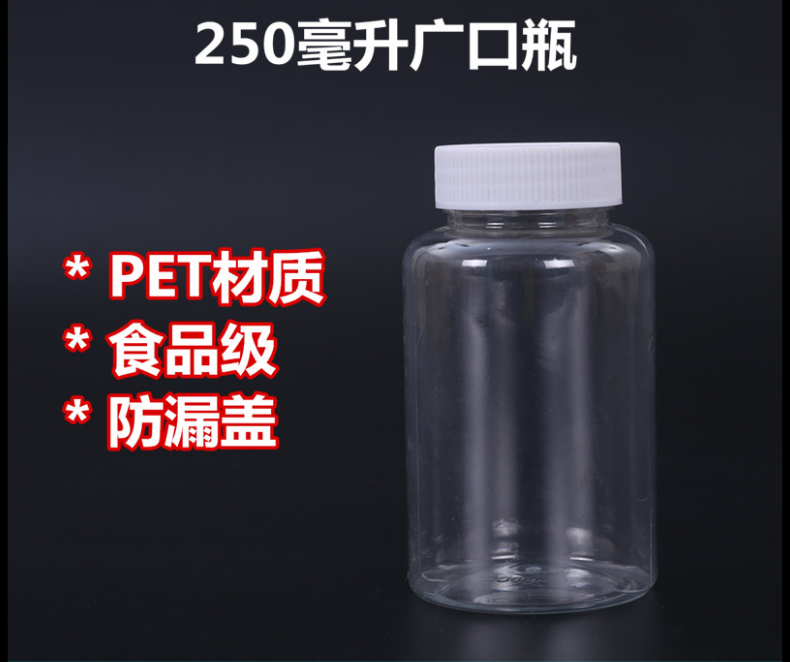 250ml plastic bottle PET bottle medicine bottle large mouth clear PET liquid bottle packaging bottle sample bottle