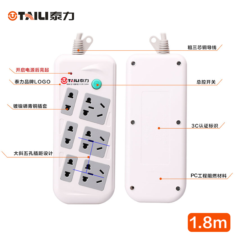 Teli power outlet Home computer wiring board Extension cable master switch 6 1 8 meters with wire plug board