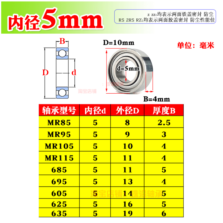 Miniature small bearing MR85 95 105 115 685 695 605 625 635ZZ Inner diameter 5mm deep groove ball