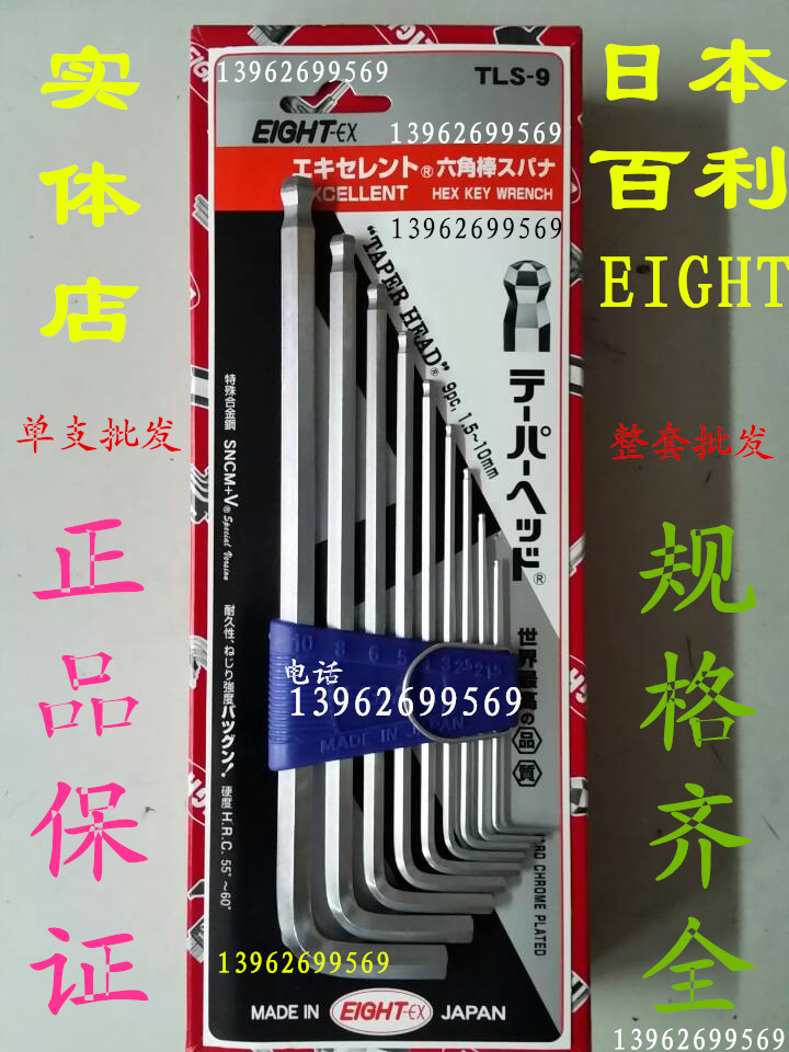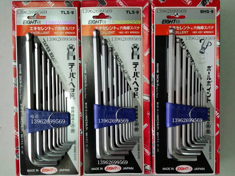 Japan imports EIGHT Bailey TLS-9 public system lengthened ball head Hexagon Wrench Metric 1 5-10mm