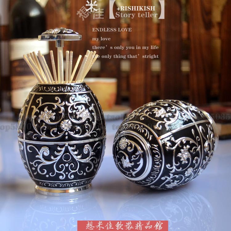 Boutique special price black toothpick cylinder fully automatic hand carved silver toothpick box home hotel KTV Supplies
