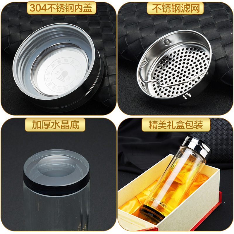 Rich Light Double Layer Crystal Glass Cup G1202-280 320 Male Lady Business Office Filter Thermal Insulation Cup Customize