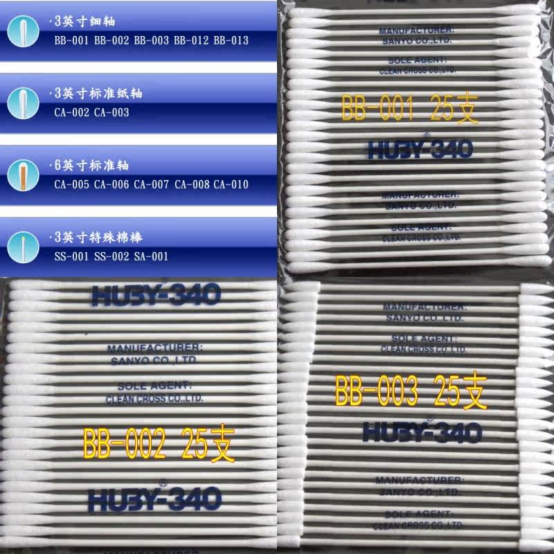 HUBY340 Japan Sanyo cotton stick dust-free purifying cotton stick wipes industrial pointed specs complete