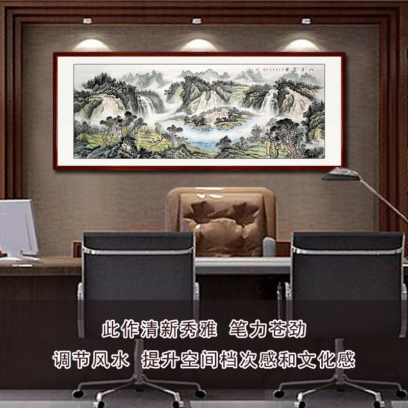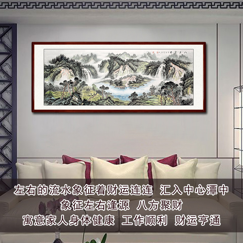 Pure hand-painted eight directions to gather wealth landscape painting living room office fortune backing mountain treasure basin traditional Chinese painting hanging core with frame
