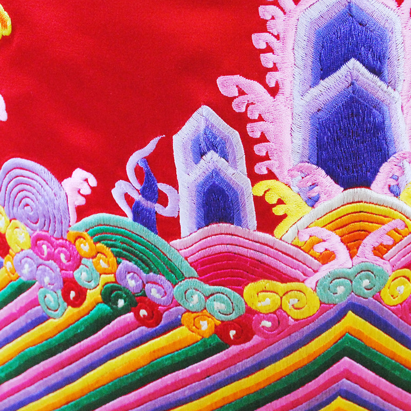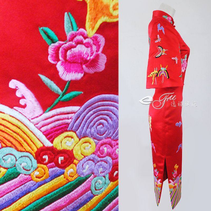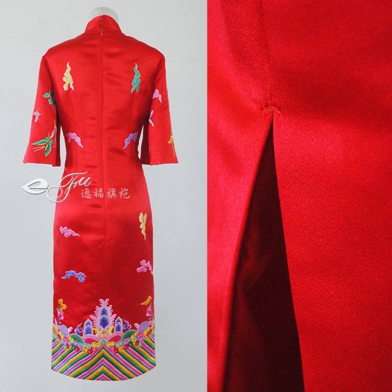 Yifu colorful phoenix embroidery silk red cheongsam bride mid-sleeve wedding dress out of the cabinet toast clothing custom