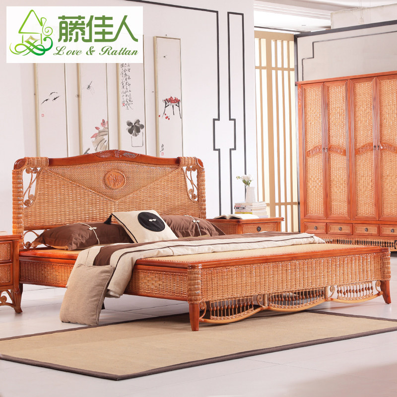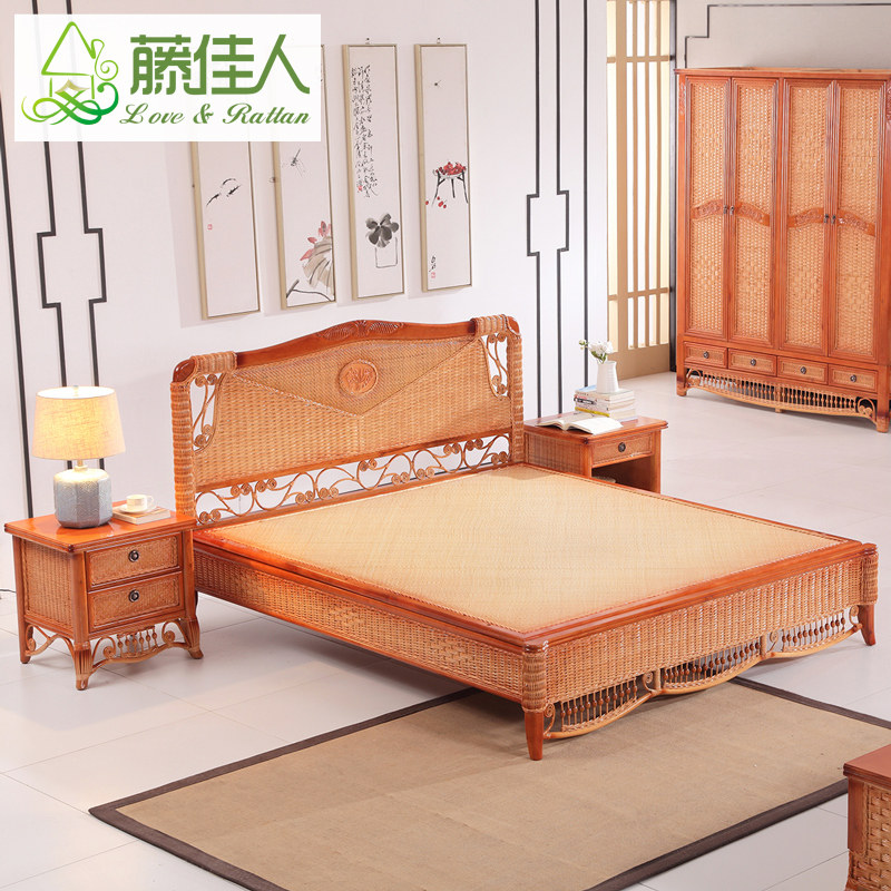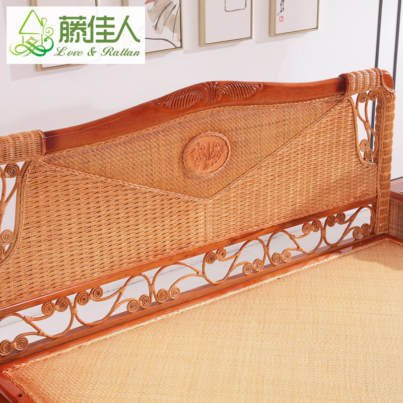 Fuji lady rattan art bed 1.8 meters double bed 1.5 meters single rattan bed solid wood rattan furniture rattan bed rattan bed HT