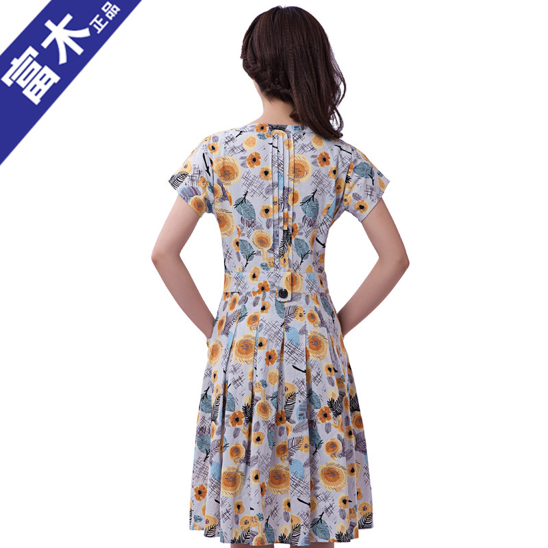Fumu summer new Korean women's short-sleeved mid-waist slim pleated dress OQ110802