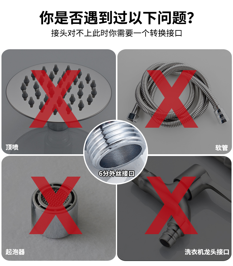 Total copper converter accessories copper-connected shower conversion joint bathing shower head changing diameter connector 6-to-4 connector