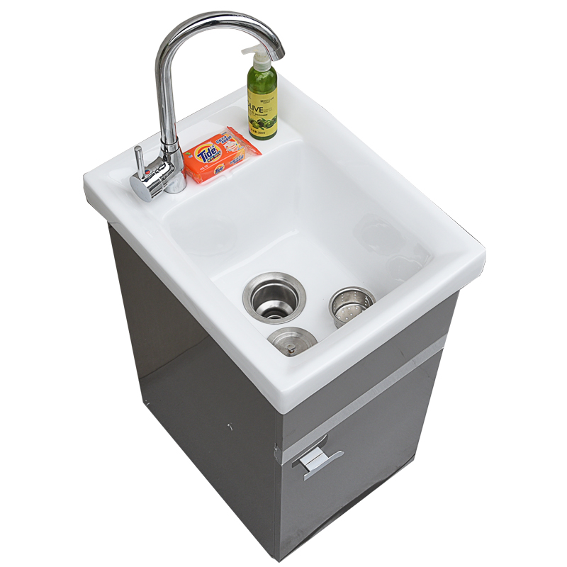Stainless steel solid wood laundry balcony Bathroom cabinet combined small household washing table washing machine mate cabinet