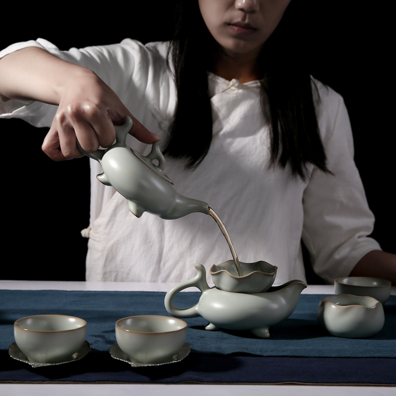 Ru Kiln Teapot Teapot Taiwan Crown Jeu Porcelain Tea Tea Tea Set for Retro Kung Fu Ceramic Teapot