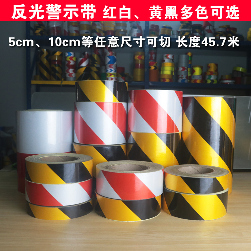 5cm wide red, white, yellow and black reflective warning tape Oblique stripe reflective film Wall logo ground reflective warning tape
