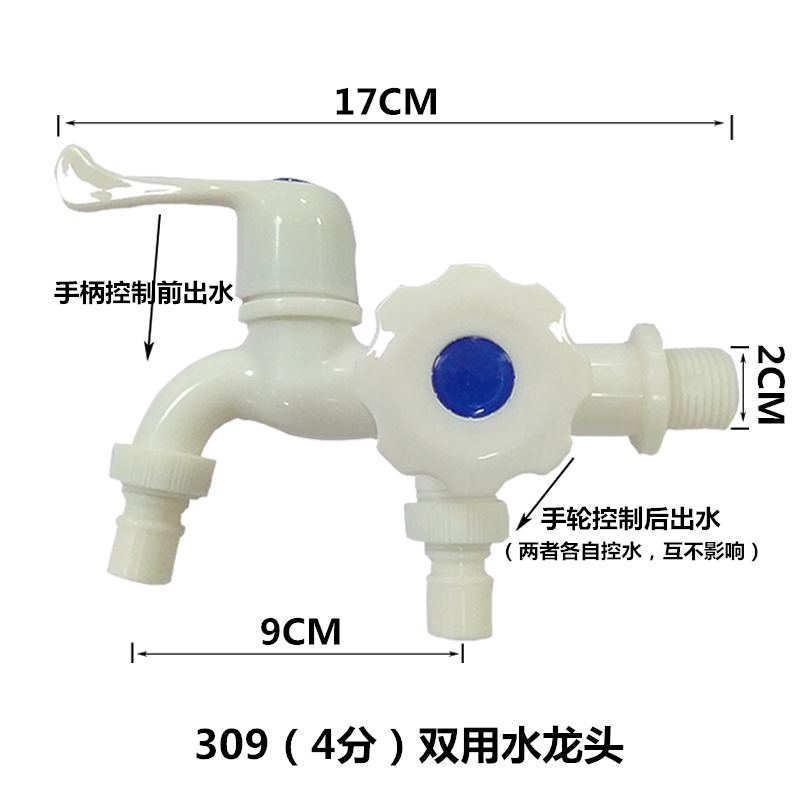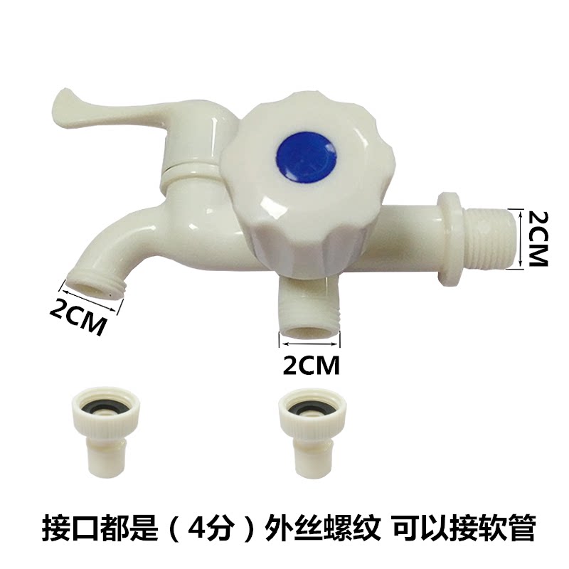 Plastic washing machine tap Double with double head three-way dual-use 10% Two single cold nozzle tap into two out of tap
