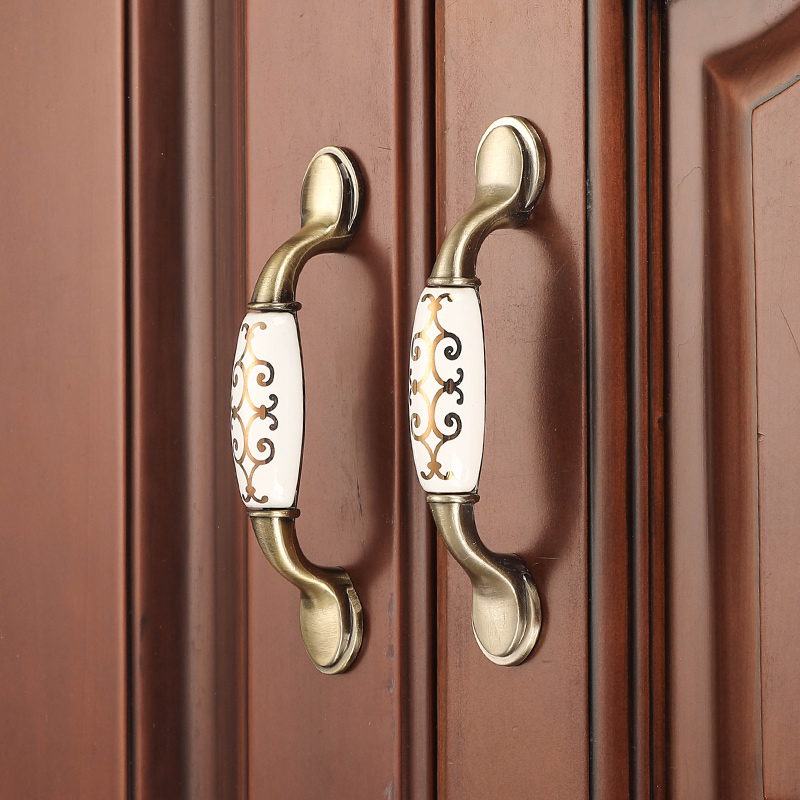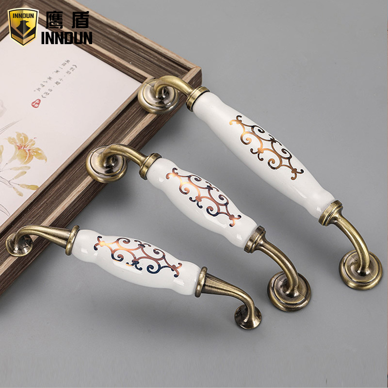 Eagle Shield Hyundai European-style Tian Yuan Overall Cabinet Closet cabinet door Qingguk Bronze Ceramic Handle Imitation Ancient Large Gold Flower Drawer Handle