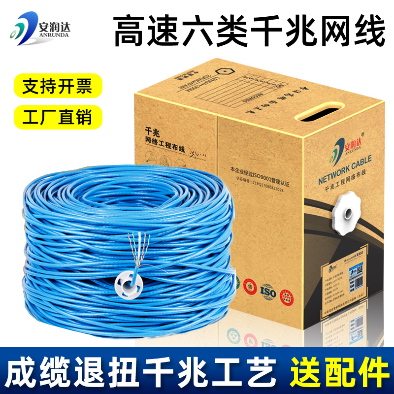 Pure copper super six network cable gigabit double shield cat6 broadband line home monitoring network twisted pair 300 meter box